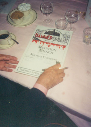 Hammeronians” signed this to Michael Carreras at the luncheon. Some wonderful valuable signatures there.