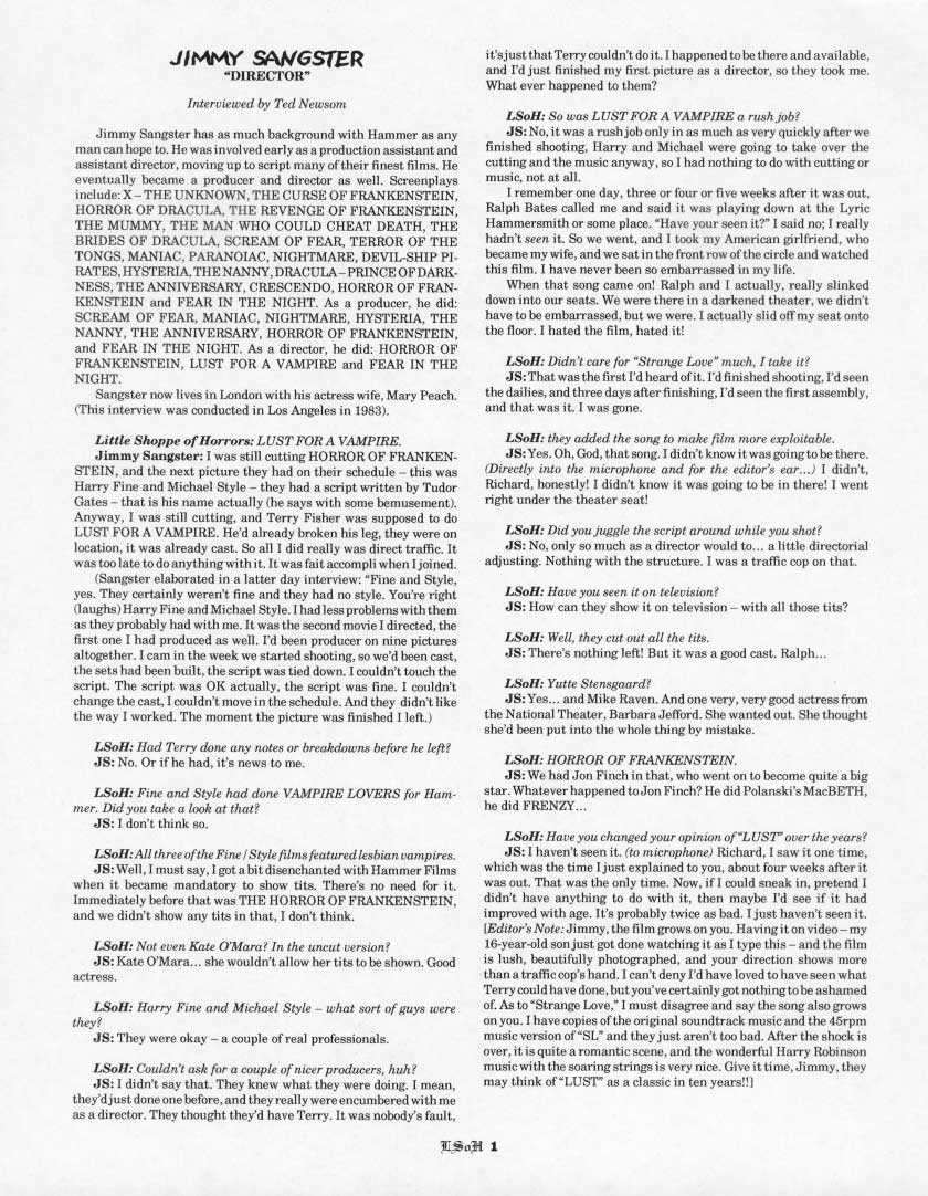 Jimmy Sangster Interview (didn’t make the cut – LSoH #16) – Page 1